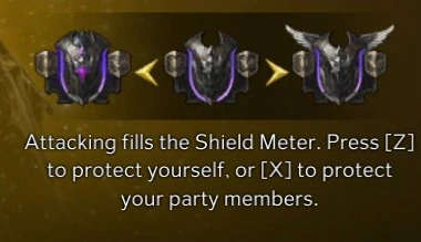 - Shield Meter fills up with each skill hit.